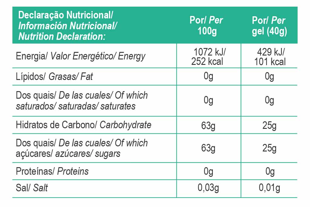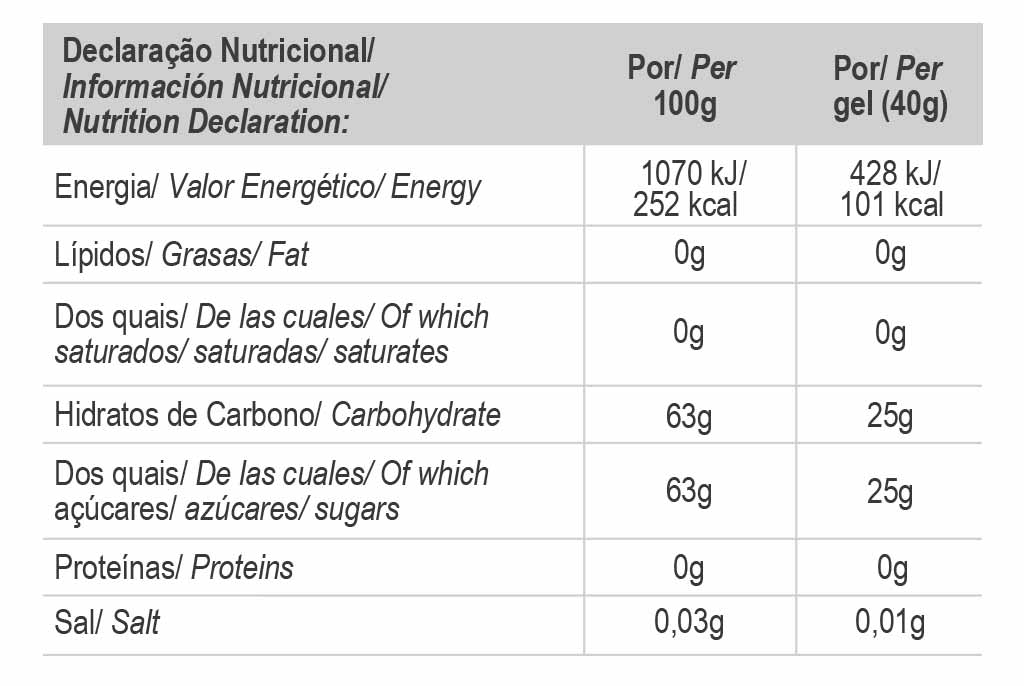 Das ProFormance Energy Gel kombiniert 25 g Kohlenhydrate in einem optimierten Glukose-Fruktose-Verhältnis von 1:0,8. Dies sorgt für eine schnelle Energiefreisetzung und trägt dazu bei, den Glykogenabbau zu verzögern. Seine innovative Textur – ultra-weich und gelartig – macht es leicht zu schlucken und ideal für längere oder hochintensive Belastungen.