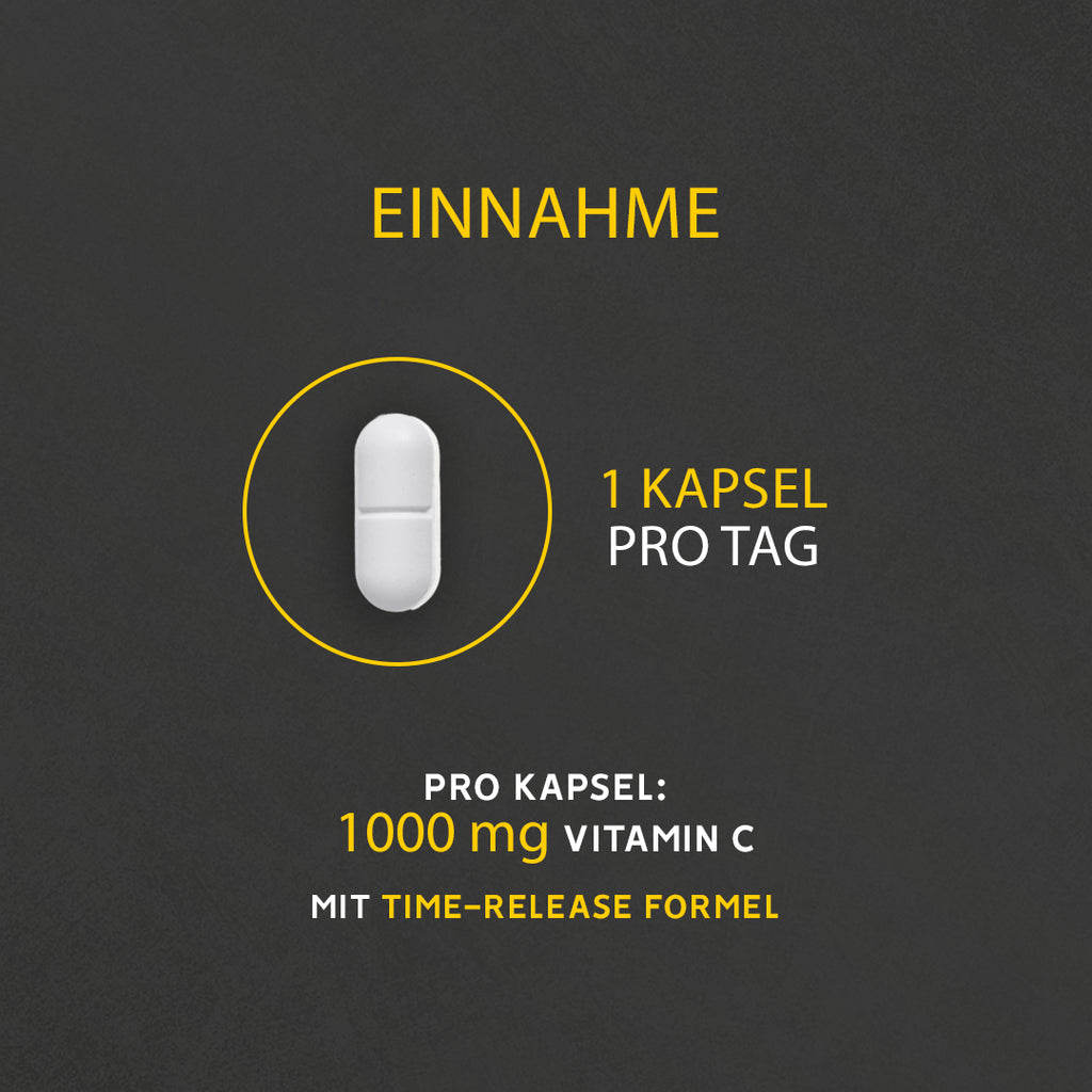 Vitamin C 1000 mg GoldNutrition® enthält 1000 mg Vitamin C pro Kapsel, was eine an unterschiedliche Bedürfnisse angepasste Nahrungsergänzung ermöglicht, indem die Anzahl der Kapseln je nach individuellem Bedarf eingenommen wird, was einen größeren antioxidativen Schutz bietet.